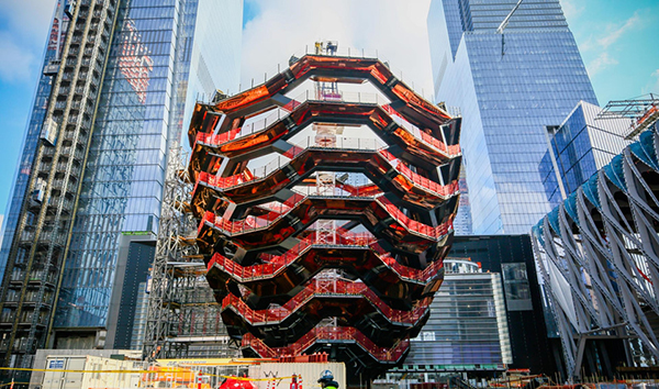 Toạ lạc tại dự án thành phố Hudson Yards của New York, toà nhà Vessel cao 45 m như một khối tượng điêu khắc khổng lồ với cầu thang nối liền. Đây là thiết kế của kiến trúc sư Thomas Heatherwick.